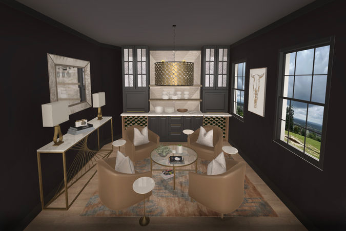 They decided to repurpose the formal dining room, which wouldn't be used much, into a "sipping lounge" for relaxing and gathering with friends. They loved the idea of a warm and moody room but weren't quite sure how to pull it off with built-ins, wine storage and seating. The living room needed to serve as a quiet space to drink morning coffee, listen to music and take advantage of the incredible view but they needed help trying to fit in the upright piano in the best location. On the third floor, the large media room has been designated as a spot for friends, entertainment, movies and a little gaming. They now have a clear plan and vision for each space which they can implement at their own pace once they move in.
